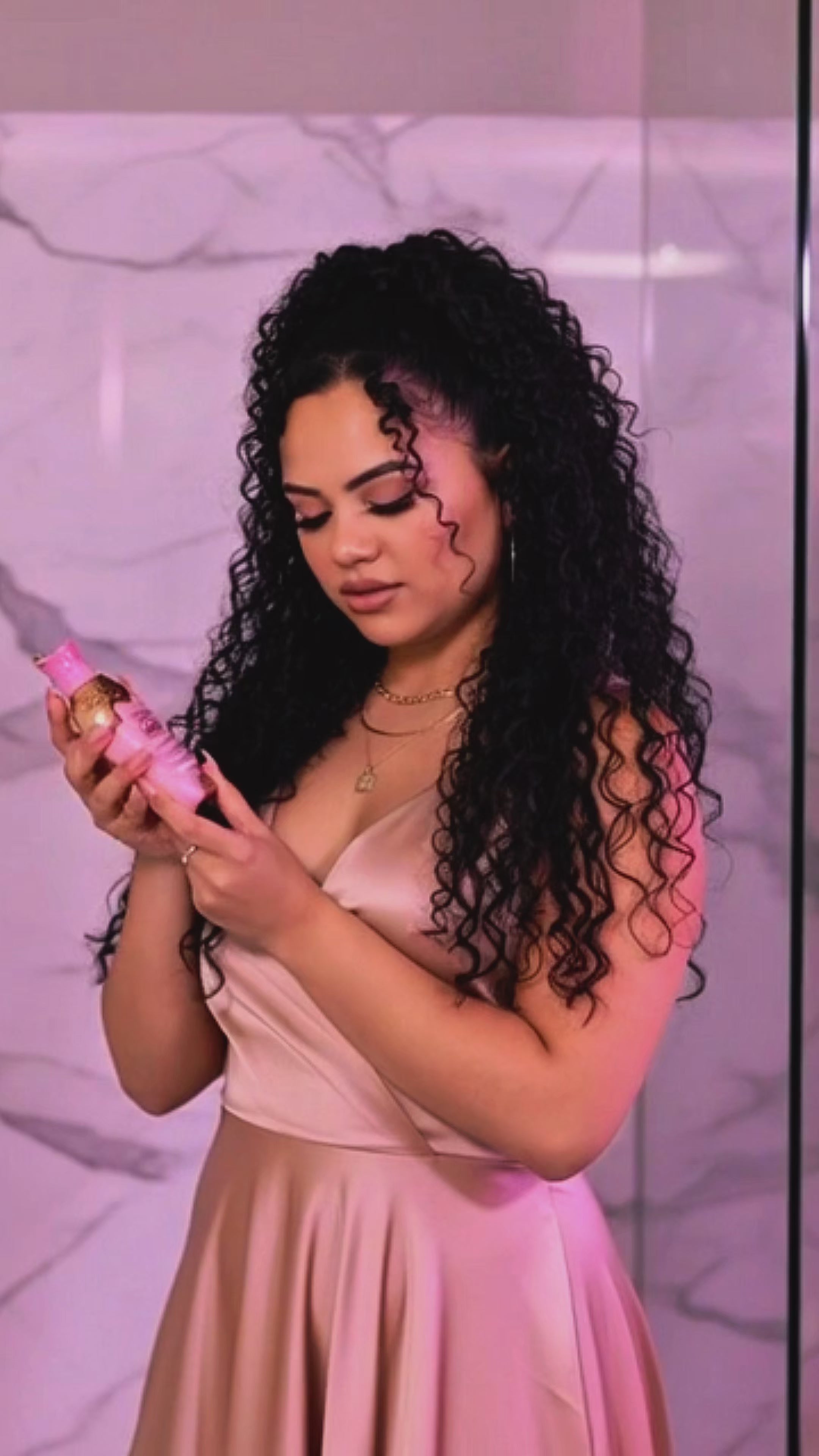 Its charming presentation captivates at first glance: a soft pink bottle with elegant gold details and a floral-shaped cap that reflects femininity, elegance, and fantasy. Ideal for everyday wear or special occasions when you want to leave a sweet and unforgettable trail.